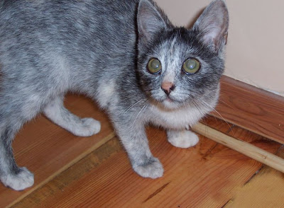 Na razie Rysia jeszcze nie jest taką kocią pięknością jak moje "starszaki", potrzebuje regularnych dobrych posiłków i opieki, ale za parę miesięcy myślę, że dorówna Gackom w urodzie. Oto Rysia dziś:
